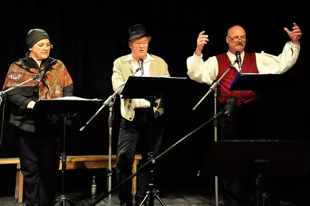 Peter Hoffmann, Oarstocker, nennt sich selbst „Lustspieler“ und ist hoffnungslos und ausdauernd mit den leichten Musen verbandelt. Als Rezitator, Sänger, Spieler und Tänzer ist er in Kabarett und Märchenstunde, Maskenund Tanzspiel unterwegs, begleitet von Orchestern, Pianör oder Drehorgel.
