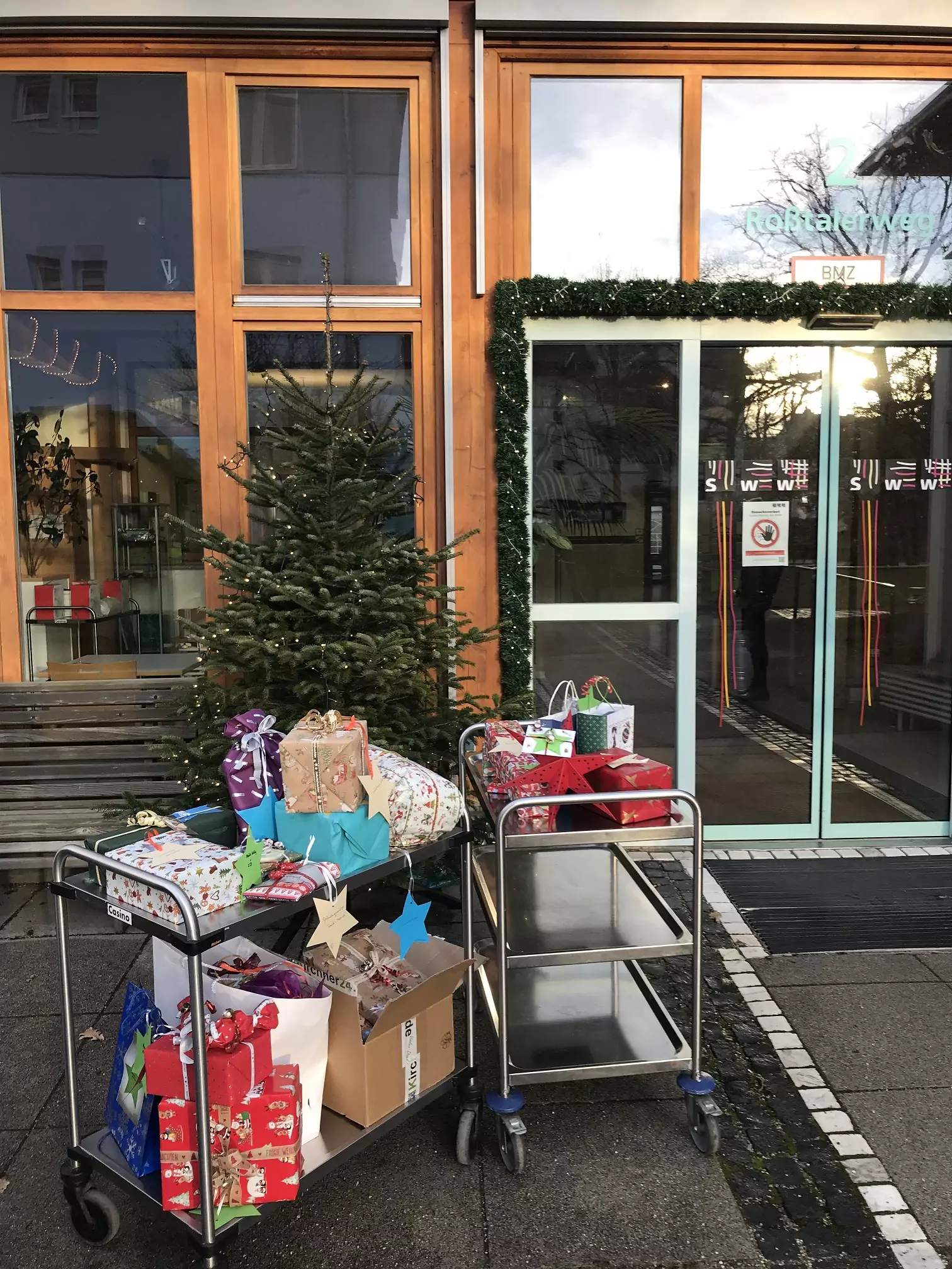 Für diejenigen, die Weihnachten dieses Jahr nicht zuhause bei ihrer Familie, sondern bei uns in den Wohngruppen verbringen, haben sich der Betriebsrat und die Beschäftigten der T-Systems International GmbH München sowie der Deutschen Telekom Business Solutions GmbH Süd/ Südwest eine ganz besondere Aktion einfallen lassen. Insgesamt 40 liebevoll verpackte Weihnachtsgeschenke nahm unsere Geschäftsführerin Cathleen Hestermann gestern persönlich entgegen, so dass diese nun pünktlich zur Bescherung an Heiligabend an die Bewohner:innen verteilt werden können. Damit auch für jede/n das Richtige dabei ist, wurden bei uns im Vorfeld fleißig Wunschsterne gebastelt, auf denen die Weihnachtswünsche übermittelt wurden. Diese Aktion startet bereits zum zweiten Mal und wir bedanken uns sehr herzlich dafür, dass wir in diesem Jahr bedacht wurden.